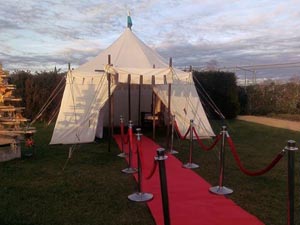 De Versaille biedt ruimte voor praktisch elke gelegenheid. Met een zijwand open is deze tent bijzonder geschikt als marktwinkel of evenementen bar. Uiteraard is de Versaille ook ideaal voor middeleeuwse feesten. Deze riddertent is gesloten zeer windvast door de 10 stokken met spanlijnen.
